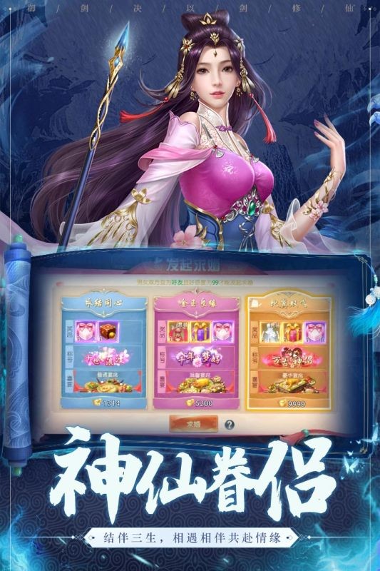 2.特色情缘系统,帮助玩家在游戏中找到另一半,携手前往仙路。