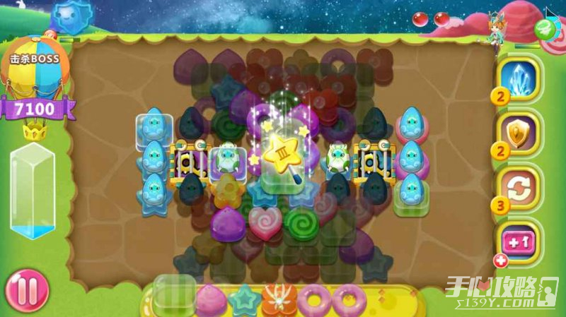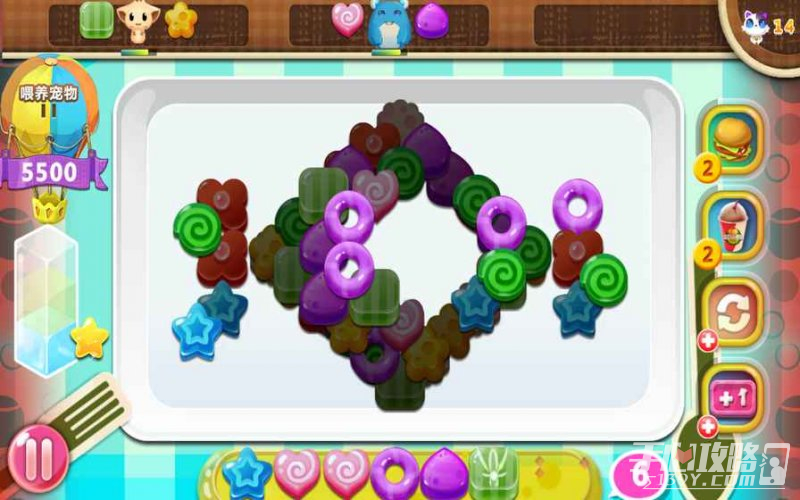 2、你可以使用道具冰冻和阻挡怪物,为你争取更多的时间来消除甜心进行攻击,除了要当心怪物之外你还要时刻留意着自己秤盘上的甜心,当秤盘上塞满了8个甜品,游戏也会失败,所以大家不要一味的追求连击而把秤盘遗忘了哦。