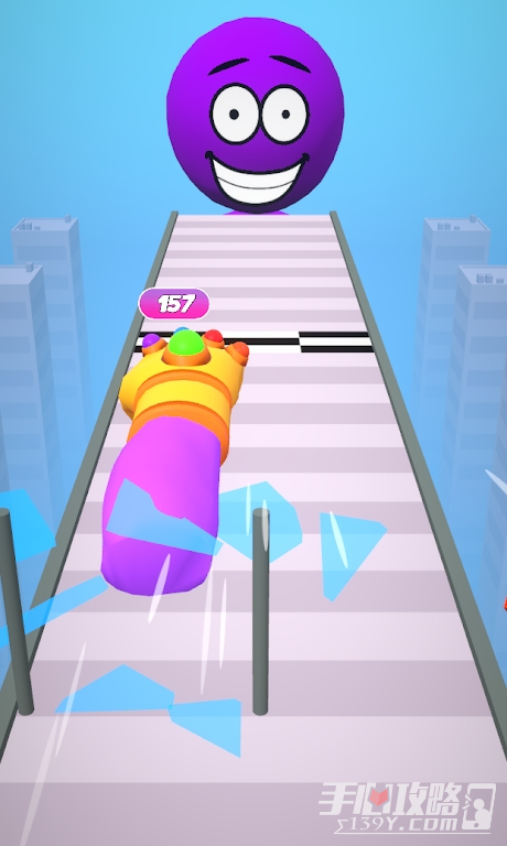 1、运用无限手套的能力克服跑酷路上的所有困难,游戏玩法休闲简单
