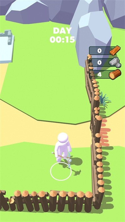 2、控制小人移动,走到岩石旁边不断地对它们收集,用它们进行建造