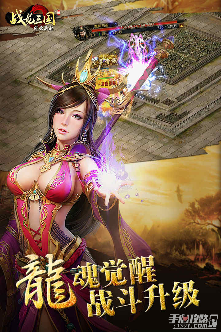 2、游戏以三国历史为蓝本,完美还原了三国英雄人物性格,加上精美的画面,炫酷的特效,流畅的操作,华丽的装备为玩家带去不一样的三国冒险