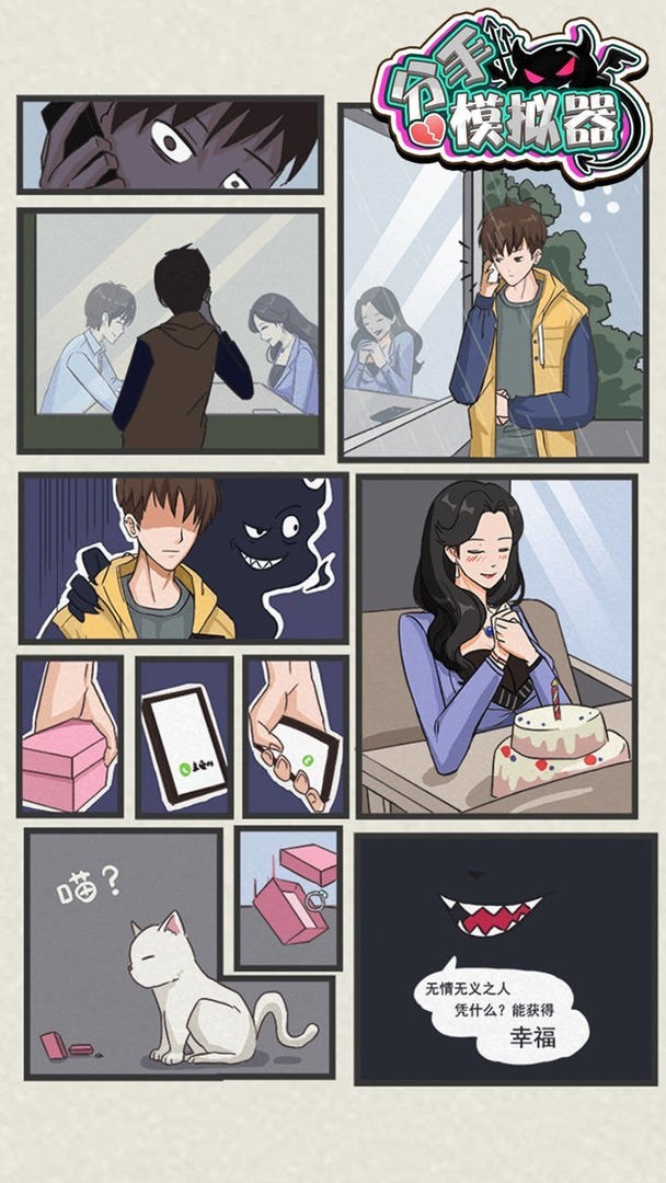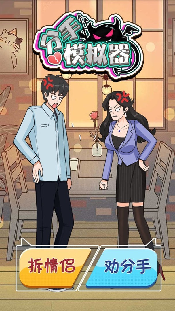 分手模拟器游戏是一款恶搞题材的游戏,在游戏中玩家的目标不再是撮合情侣而是拆散一对又一对的情侣,玩家可以先想办法让情侣直接因为种种矛盾而吵架,并且变得越来越不可调和,直到最后以分手而告终,总之拆散一对是