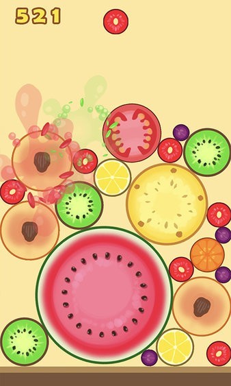 2、这样,当小水果合成时,很容易引起连锁反应,自动合成所有水果。