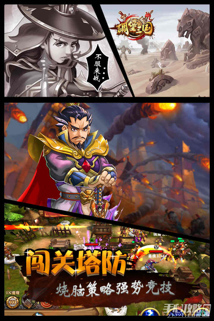 是一款以历史三国为题材的策略塔防手游,游戏中加入了传统的塔防的同时也加入各种陷阱和战争的元素,玩家在游戏中可以将武将的顺序进行自行的调配,不断强化了自己的策略性!