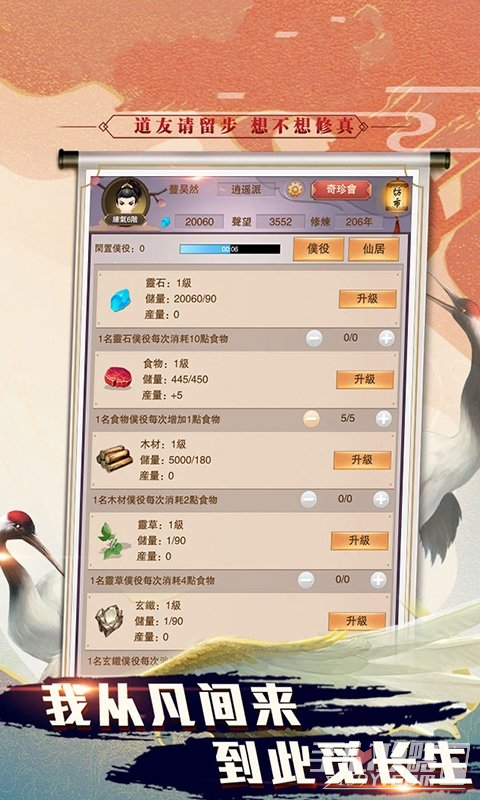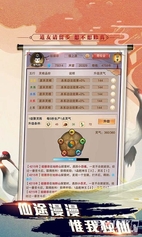3、游戏打造纯正的修行世界,各种修炼、历练玩法任你体验,海量功法、法宝助你渡劫,为玩家带来无限灵石福利