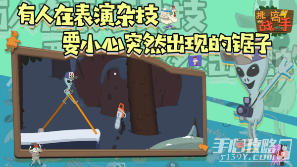 挑战高手是一款挑战走路游戏,当这些动物们想要用两条腿走路的时候,他们会想出很多花招,其中一种就是用两根木棍分别绑在他们的两条腿上面开始行走,就像古代人们脚上踩着高跷表演一样,只是将人换成了动物们的模样,他们玩起了这样的表演,还要翻越很多苦难的关卡。