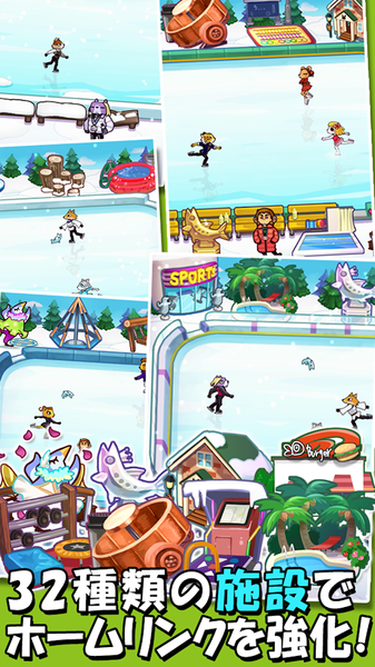 1、各种类型的动物们以滑冰选手的身份登场,玩家可以自由设置滑冰赛场,培养喜欢的动物们在冰上练习