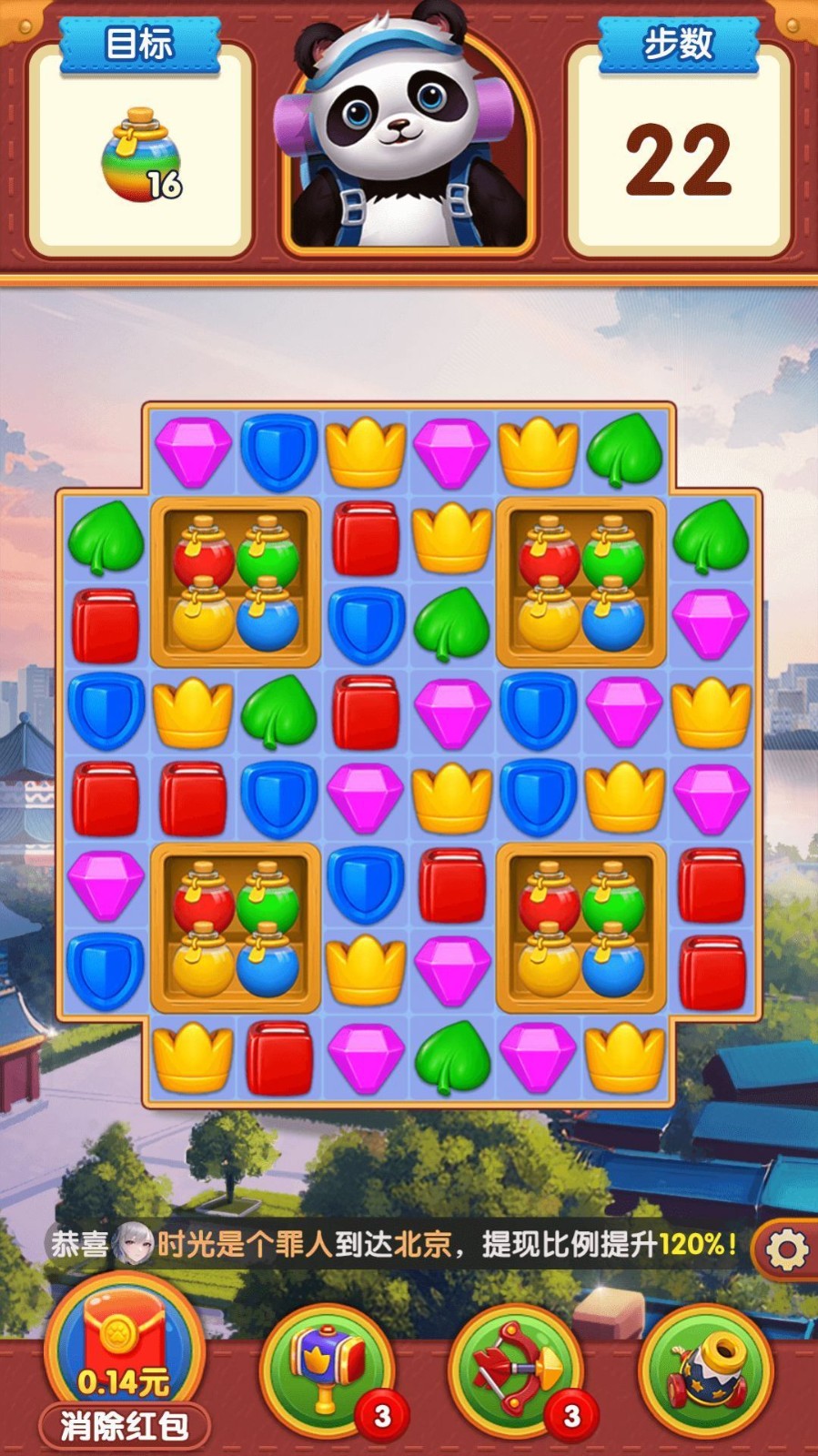 熊猫爱旅行是深圳市昱铂科技有限公司发行的新颖有趣的福利消除等着你加入挑战,每个不同的旅行地点都会给你带来新的挑战消除,经典的三消除规则玩家可以更快的完成,通过完成不同的消除任务可以得到丰富的红包会给你带来更多的挑战,你可以不断收集各种功能的消除道具,这将给你带来更多的挑战,帮助你在不同的任务中玩!