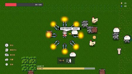 1、玩家通过虚拟摇杆或触摸屏幕控制兔子的移动,同时利用自动射击或手动瞄准的方式,击败不断涌现的敌人。