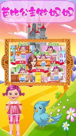 1、游戏画面卡通可爱,游戏中玩家要扮演以为妈妈的角色,负责照顾自己的孩子,要带孩子到超市进行购物,购买宝宝用品,装扮你的小公主,让它成为最好看的人儿