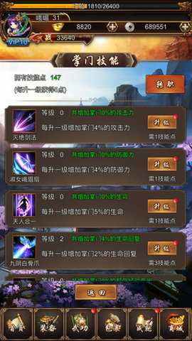 2、不同门派独有的技能,经常转职才是王道,击败名将后,可用灵符解开名将的封印,获得他们的武功