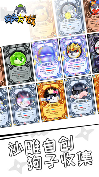 2、随时喊各种神奇的狗头,初步精彩的战争,丰富幽默的发展方式,无尽的战斗方式,喊更多的狗头,打败更多的对手,每个狗头看起来一样,但有强大而酷的技能,沉浸在无限的斗争中,血腥的决斗赢得了更多的成功