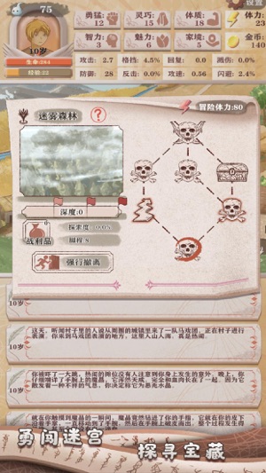 3、文字风格的游戏玩法,玩家在游戏中扮演重生到国际的主角,面对随机的国际,玩家需要使用不同的策略来生存,变得更强大