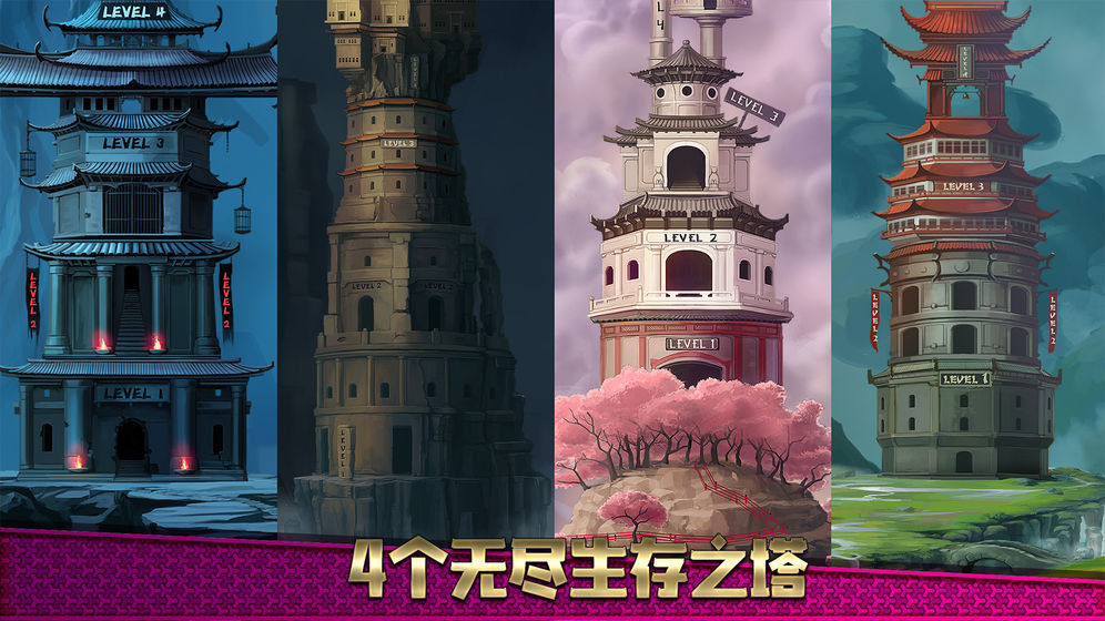 1、游戏中有四座不同的塔等着玩家去挑战,每座塔都有一百多个不同的关卡等着玩家去完成战斗;