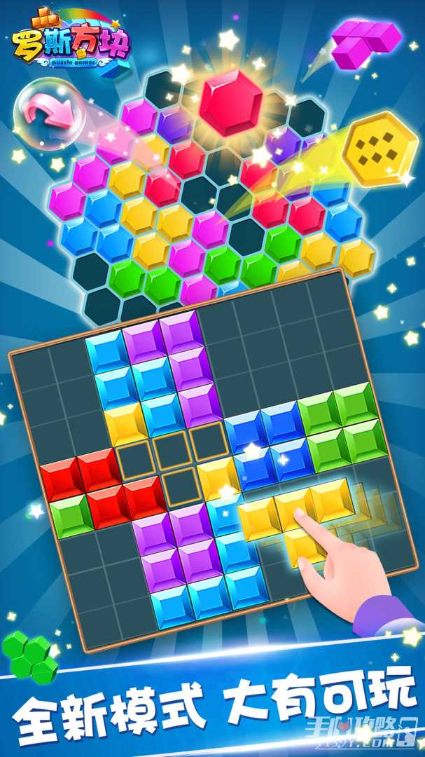 1、游戏采用俄罗斯方块的玩法,在游戏中玩家将体验到最经典的方块玩法,超级简单的操作让玩家更加容易上手